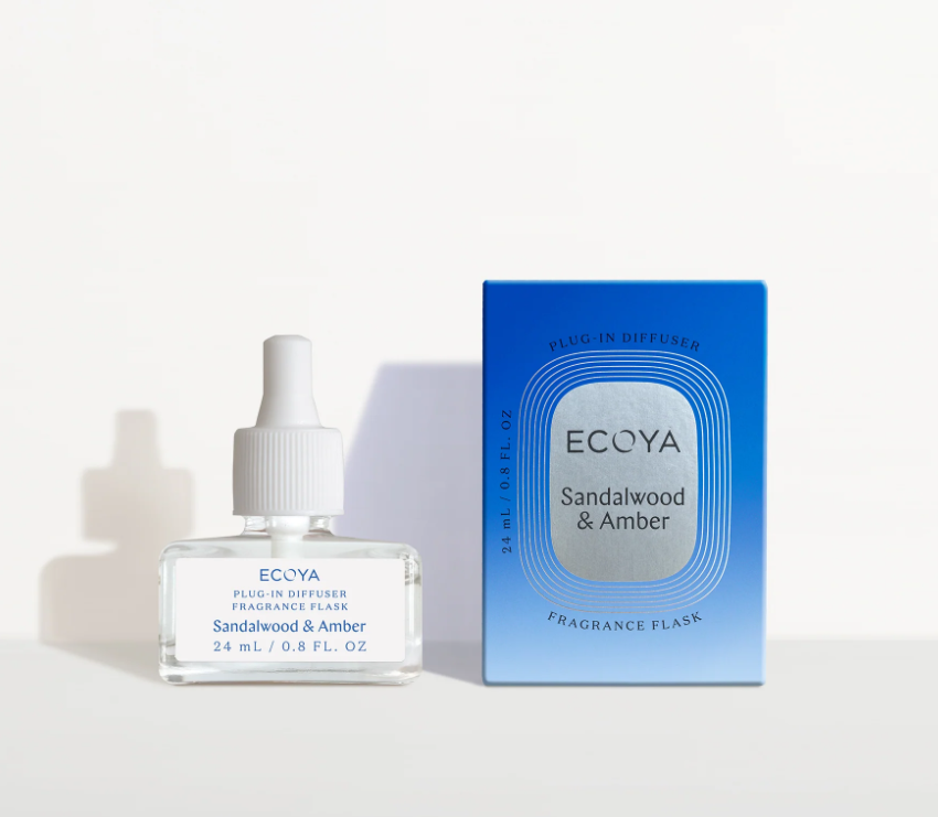 Designed to seamlessly integrate with the ECOYA Plug-In Diffuser, the Fragrance Flask attaches effortlessly to the Plug-In Diffuser and fragrances your home for up to 700 hours. Crafted from glass, the 24mL flasks are fully recyclable. Simply replace the Fragrance Flask to switch scents. ECOYA Plug-In Diffuser sold separately. Made in New Zealand.