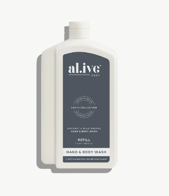 About: Alive Body 1 L Coconut & Wild Orange Wash Refill is housed in a durable bottle made from 100% post-consumer recycled (PCR) plastic.