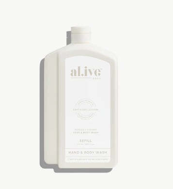 Each refill is designed to refill the 500ml al.ive body Hand & Body Wash bottle twice. With a controlled-flow spout for mess-free pouring, compact shape for easy storage, and full kerbside recyclability, it offers a practical, premium solution while extending the life of the product you already love.